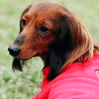 従弟家の莉奈はLaughin'DogのLサイズモデルです。レンズ越しの表情がとても豊かだったのが、印象的です。袖つきの服をかっこよく着こなしてくれました。これからもよろしくお願いします。 - 犬種・・・・・・・・・・DACHSHUND (RED)